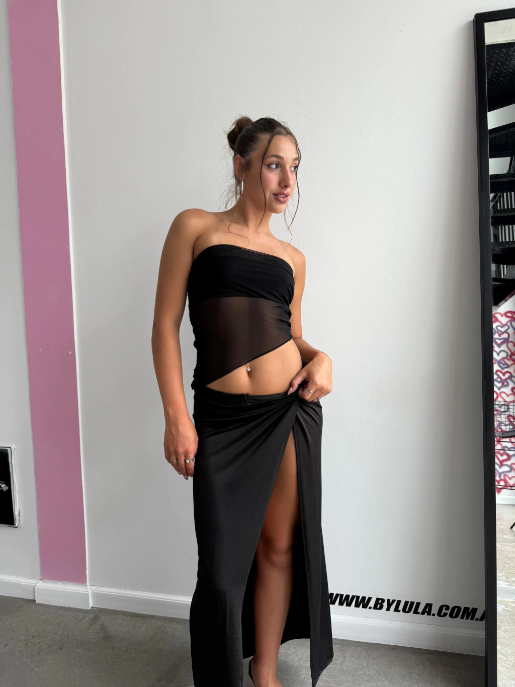 Descubre la POLLERA SOFI, una pollera larga de lycra negra con nudo y tajo pronunciado que combina estilo y comodidad. Esta prenda es talle único, abarcando talles desde el 36 hasta el 44, lo que la convierte en una opción versátil para cualquier figura.